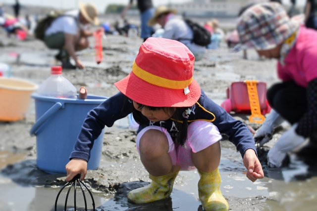 また、潮干狩りでは潮が戻ってくる時間にも注意が必要です。